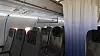 En sektion foran på flyet til Business Class-rejsende, adskilt med et gardin og overliggende skillevæg.